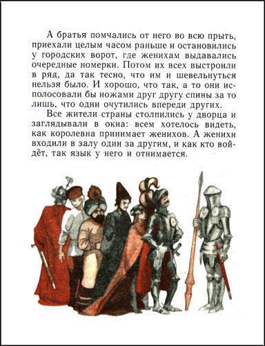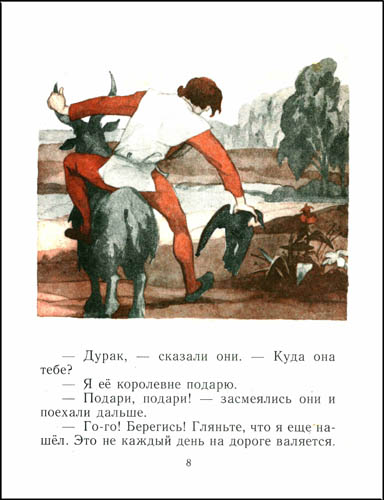 Сказка Андерсена «Дурень Ганс» рассказывает о том как три брата хотели жениться на королевне. Для потенциальных женихов она придумала испытание: пообещала выйти замуж за того, кто сможет ответить на ее вопросы, за словом в карман не полезет и развлечет ее разговором.